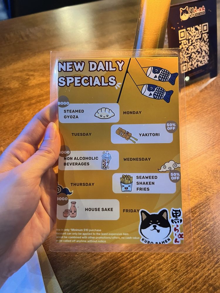 Kuro Ramen, located in Chicago, offers a wide selection of delicious Japanese dishes perfect for late-night cravings. Reviews rave about the exceptional service, trendy and inviting ambiance, and ample parking available. Customers praise the flavorful ramen, appetizers, and vegetarian options, with standout dishes like Gyu Don and Chicken Karaage receiving top marks for taste and quality. The menu caters to diverse palates with options for all, and the reasonable prices make it a worthwhile dining experience. The warm and cozy atmosphere, enhanced by modern decor and soft lighting, creates a welcoming environment for enjoying a satisfying meal. With a focus on attentive service, Kuro Ramen is a hidden gem in Chinatown, promising unforgettable dining experiences for all.